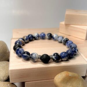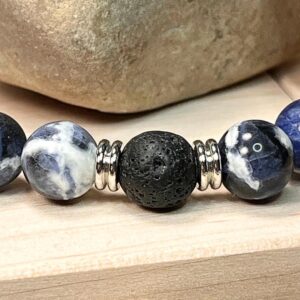 This stunning, genuine semi-precious gemstone bracelet combines the beauty of natural gemstones with the rugged texture of lava, creating an attractive accessory that can be worn on any occasion. Crafted with the utmost attention to detail, this striking bracelet is sure to impress and make a statement. Its simple yet elegant styling will compliment any outfit while adding some positivity to your day. Splash on your fav. essential oil and go out into the world with confidence!