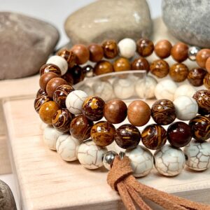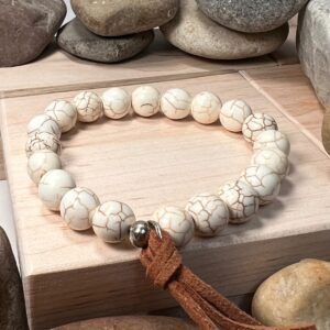 (8mm & 10mm) Howlite relieves stress & anxiety. It quietens an overactive mind and increases patience and understanding.