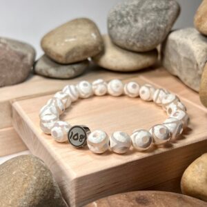 (10mm ) Tibetan 3-Eye Dzi Agate is a very traditional stone that is believed to be a Stone of Protection. It attracts wealth and abundance to the wearer.
