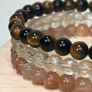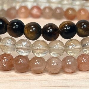 This 3-piece Piccolo (Small & Delicate) Leo Zodiac Bracelet Set features a fiery trio of Citrine, Sunstone and Tiger’s Eye, designed to celebrate your vibrant energy and support your natural leadership qualities. Made with smooth 6mm semi-precious beads, this complete set brings together strength, positivity and magnetic charm—just like you.