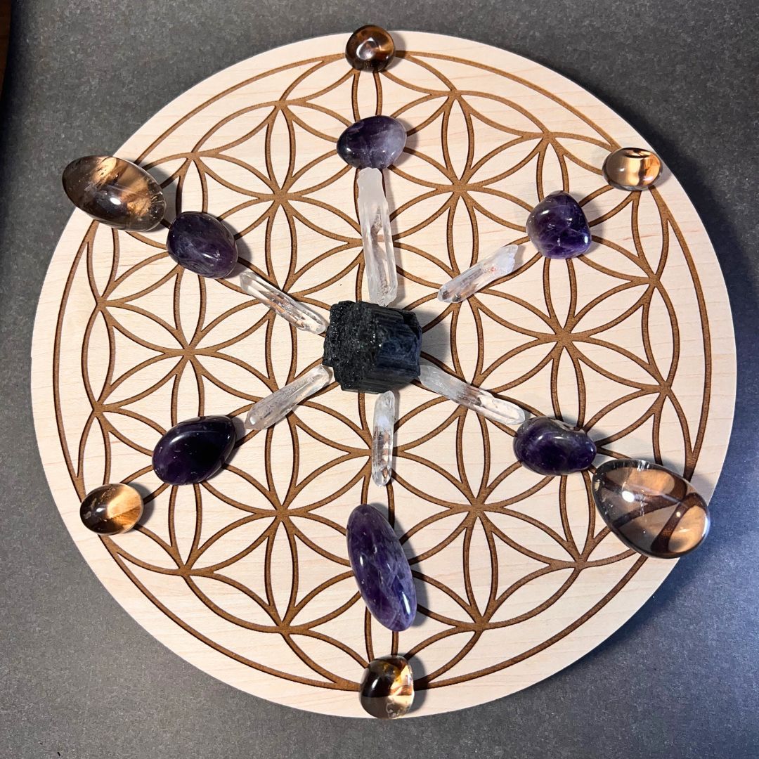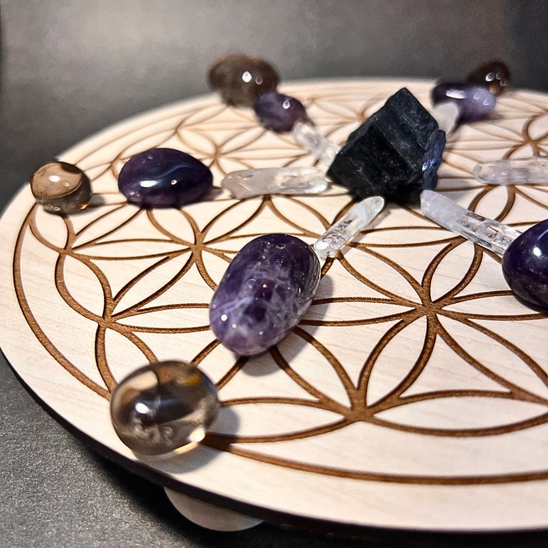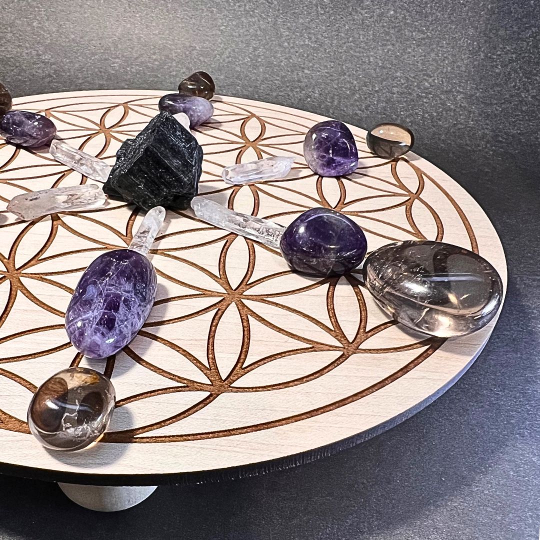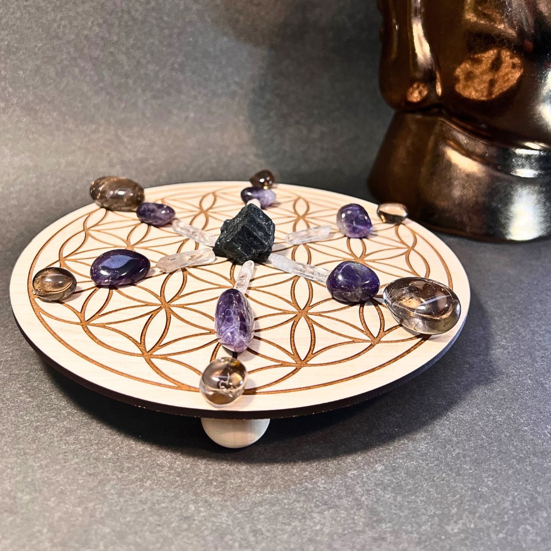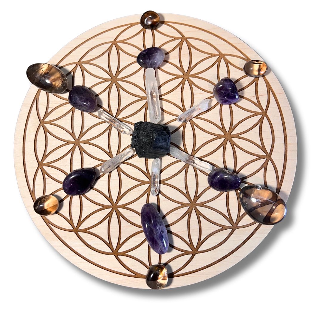 ✨ Flower of Life Grid Board: Immerse yourself in the sacred geometry of the Flower of Life grid board, a potent symbol of protection and spiritual balance. This meticulously locally handcrafted (Hinton, Alberta) board serves as the foundation for your crystal arrangement, amplifying the protective energies and creating a powerful shield around you.